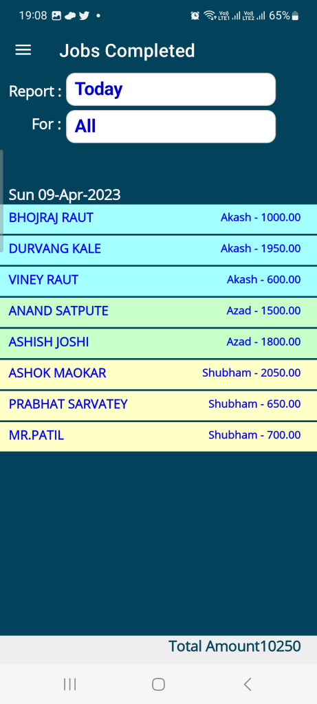 Team/User wise work done, Team/User wise work Allotted, Team/User wise collection (Cash/Cheque/UPI/Net banking/Balance).