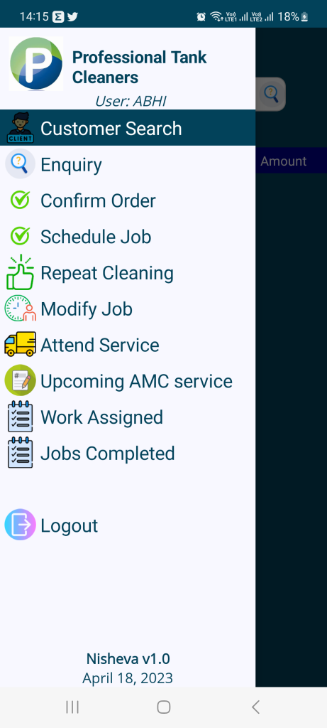 Manage your customers, Customer Work done history ,Customer tank size/cost details, Manage AMC.